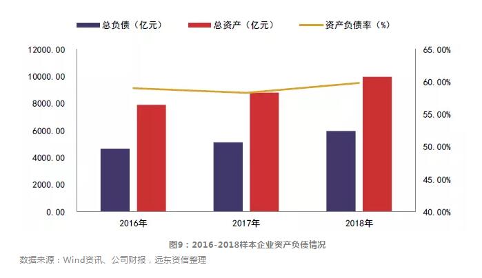 负债方面,2018年以来,由于行业投资规模持续增长,样本企业负债规模持续扩大,增幅大幅增加。截至2018年6月末,样本企业的负债总额合计为5966.96亿元,较上年同期增加16.27%(图9)。同期末,样本企业平均资产负债率为59.83%,较上年末增加1.52个百分点,仍处于较高水平。由于水务企业业务收费周期稳定,收款情况好,通常来说经营性现金流较为充裕,且样本企业中多为地方政府下属的水务运营平台,可得到地方政府较大力度支持,因此融资能力较强,较高的负债经营程度仍在可接受范围内。