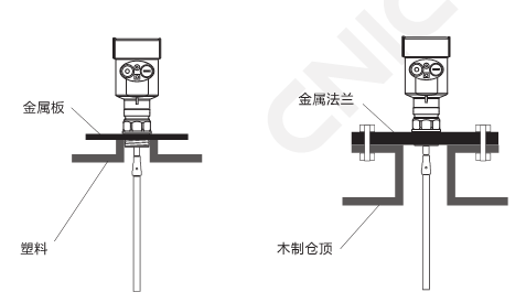 c. 建议安装在料仓直径的1/4或1/6处,与罐壁的最小距离为测量范围的1/10