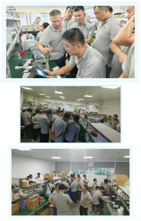 除了总结,本次会议还特别设置了实战学习环节,常驻外地的同事到车间亲自上手学习仪表调试,针对性进行技术交流,增强专业知识能力,为后续工作的推进筑牢根基。