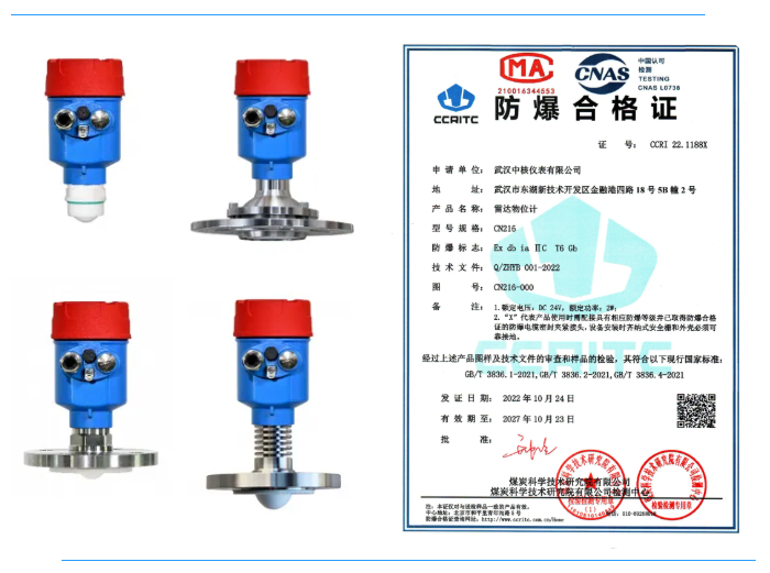 中核仪表CN216型导波雷达物位计,成为多晶硅产线料位测控的“核心装备”。该型号采用脉冲工作方式,发射功率极低,配备高强度测量探杆,能有效抵御硅粉长期进料时的冲刷磨损,避免因物料冲击导致的测量部件损坏。同时,CN216型具备多种过程连接方式及探测组件型式,可灵活适配低压、高温高压等不同工况的硅粉料——无论是常规低压料仓的日常料位监测,还是高温高压环境下的精准计量,均能稳定发挥性能。更关键的是,CN216型雷达物位计严格符合粉尘与气体双重防爆标准,从设备本质安全层面杜绝生产风险,实时反馈料仓内硅粉存量,为硅料进料节奏把控、配料比例精准控制提供可靠数据支撑,彻底避免因料位失控导致的生产中断或原料浪费。
