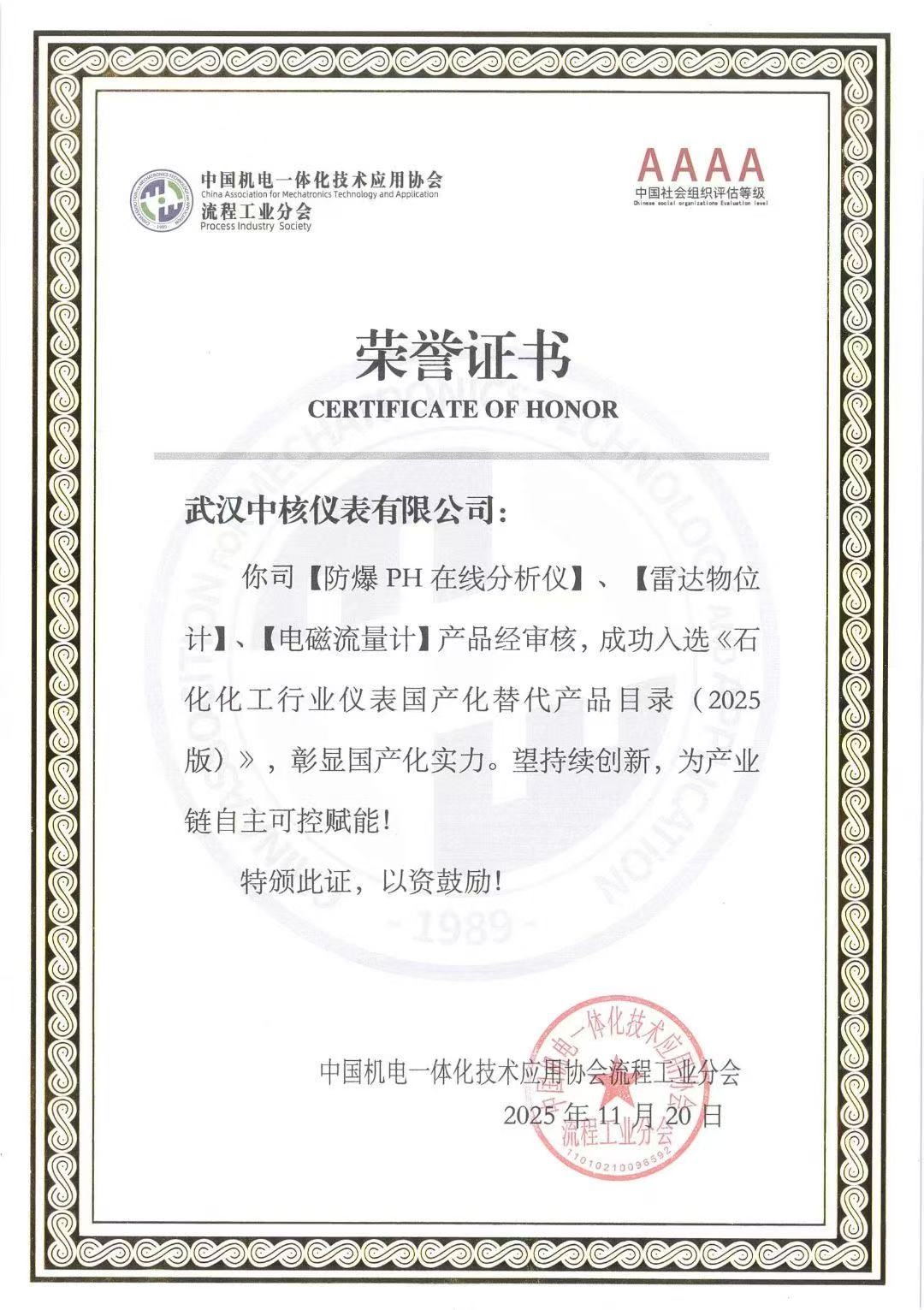 祝贺《石化化工行业仪表国产化替代产品目录(2025版)》编撰圆满完成,武汉中核仪表有幸入选其名单中